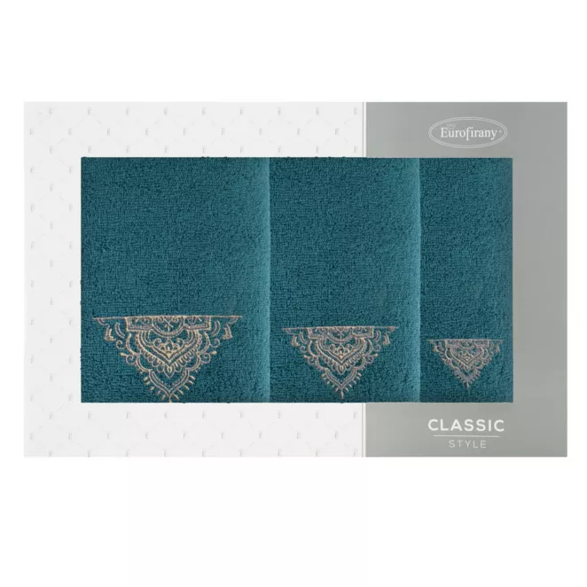 3. Ręcznik do rąk 30x50 cm bawełniany kolor turkusowy z błyszczącą bordiurą 530 g/m2 FILON