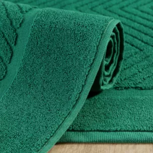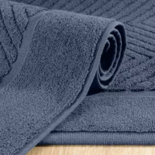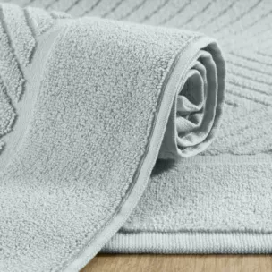 Dywanik łazienkowy z bawełny frotte zdobi  geometryczny wzór zygzaków. Prosty, a zarazem nowoczesny wzór  wkomponuje się w aktualne trendy dekoracji wnętrz oraz zapewni komfort  chroniąc stopy przed zetknięciem z zimną podłogą.  Kolekcja obejmuje kilka kolorów, każdy w dwóch rozmiarach. Dywanik nie posiada osłony antypoślizgowej i może być stosowany na podgrzewanych powierzchniach.