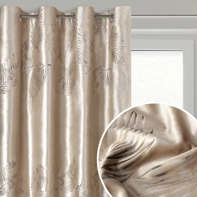 1. Zasłona kremowo, srebrna welwetowa z nakrapianym nadrukiem 135x270 cm taśma - AVENA