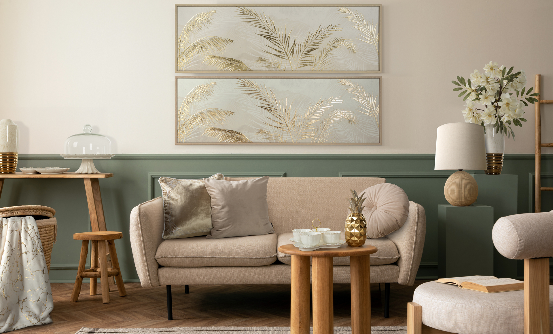 Salon w jasnych tonach to hit ostatnich sezonów. Jasne ściany w połączeniu z modną podłogę w jodełkę oraz meblami z ciemnego drewna, a także eleganckimi, złotymi dodatkami to kwintesencja stylowego wyglądu. Stonowana kolorystyka sprzyja relaksowi po ciężkim dniu. Złote elementy oraz stylowe dodatki nadają wnętrzu elegancji i sprawiają, że staje się reprezentatywną przestrzenią w naszym domu. Dzięki klasycznej kolorystyce oraz naturalnym materiałom taki salon zyskuje ponadczasowy design i będzie cieszył oko przez lata.