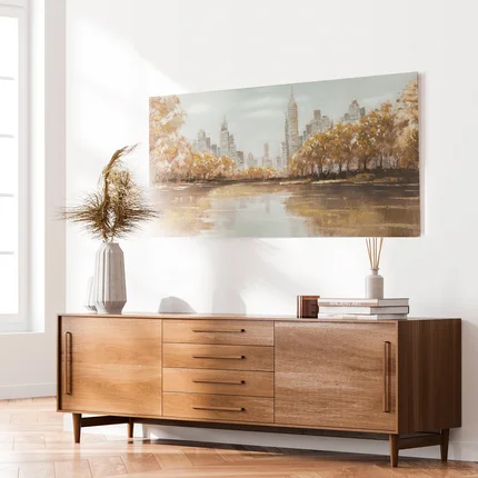 1. Obraz MIASTO ręcznie malowany na płótnie 140 x 70 cm