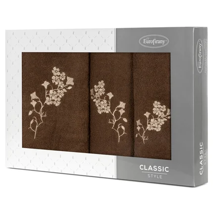 6. Ręcznik kąpielowy 50x90 cm bawełniany kolor ciemnobrązowy z żakardową bordiurą z nowoczesnym złotym wzorem 500 g/m2 LIANA