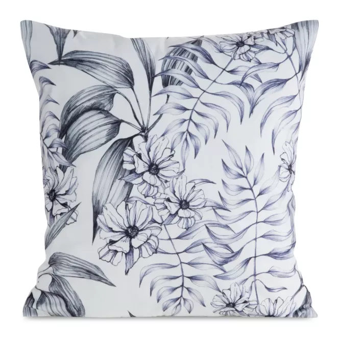 13. Poszewka na poduszkę 45x45 srebrna, kremowa welwetowa z subtelnym motywem kwiatów ROSITA 1