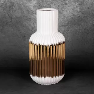 Wazon ceramiczny MONA z geometrycznym motywem biało-złoty