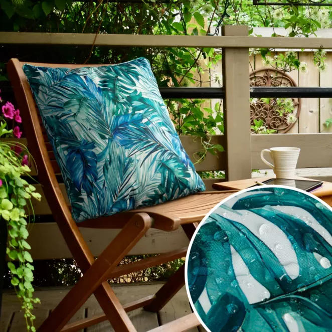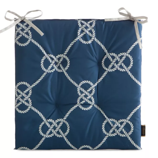 19. Poduszka na krzesło 40 x 40 x 3 cm welwetowa morska z ozdobnym pikowaniem i praktycznymi troczkami GAJA