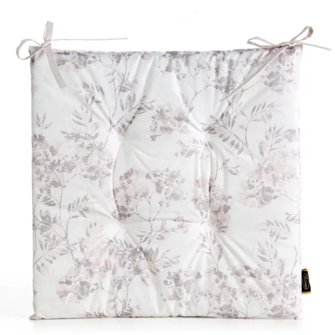 12. Poduszka na krzesło 40 x 40 x 3 cm welwetowa kremowa z ozdobnym pikowaniem i praktycznymi troczkami GAJA