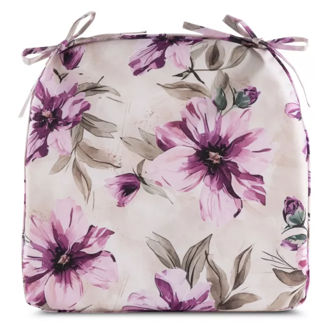 1. Poduszka na krzesło 40 x 40 x 3 cm welwetowa beżowa z ozdobnym pikowaniem i praktycznymi troczkami GAJA