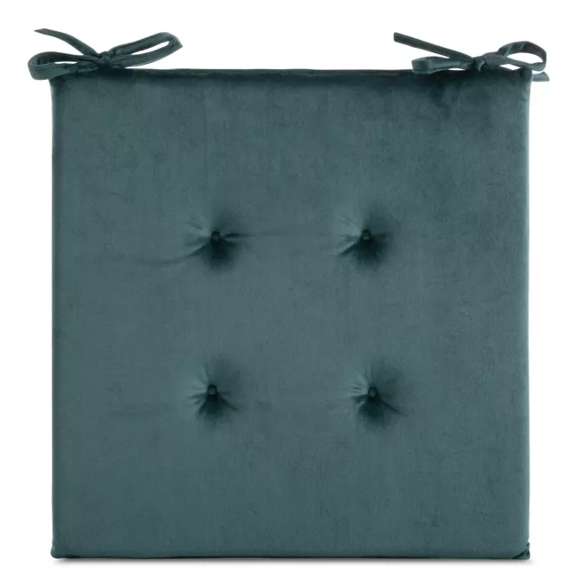 20. Poduszka na krzesło 40 x 40 x 3 cm welwetowa ciemnoturkusowa z ozdobnym pikowaniem i praktycznymi troczkami GAJA