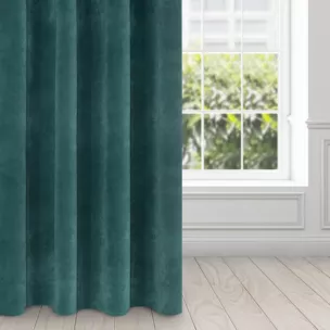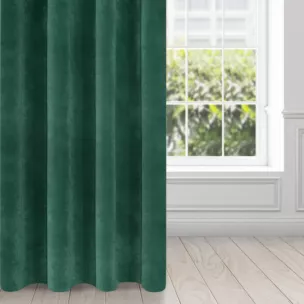 Kolekcję modnych zasłon zaprojektowano z luksusowej, miękkiej welwetowej tkaniny o aksamitnej strukturze, która ze względu na swoją gęstość oraz grubość dobrze kryje Twoje okna - w dzień przed promieniami słonecznymi, a wieczorami przed spojrzeniami ciekawskich. Zastosowanie  zasłonie aż 10 szt. przelotek sprawia, że tkanina bardzo ładnie się układa, tworząc po zawieszeniu regularne fale, a zakładanie i zdejmowanie dekoracji jest szybkie i  proste. Wysoka gramatura 290g/m oraz gładka, półmatowa powierzchnia i aksamitna struktura tkaniny sprawiają, że zasłona zjawiskowo odbija światło i znakomicie prezentuje się po zawieszeniu. Gładka tkanina w jednolitym kolorze sprawia, że takie zasłony to uniwersalna dekoracja pasująca zarówno do wnętrz klasycznych, jak i nowoczesnych, tworząca subtelne tło dla aranżacji wnętrza. Stosując się do instrukcji konserwacji masz pewność, że po praniu tkanina nie kurczy się ani nie wymaga pracochłonnego prasowania. Szczerze polecamy.