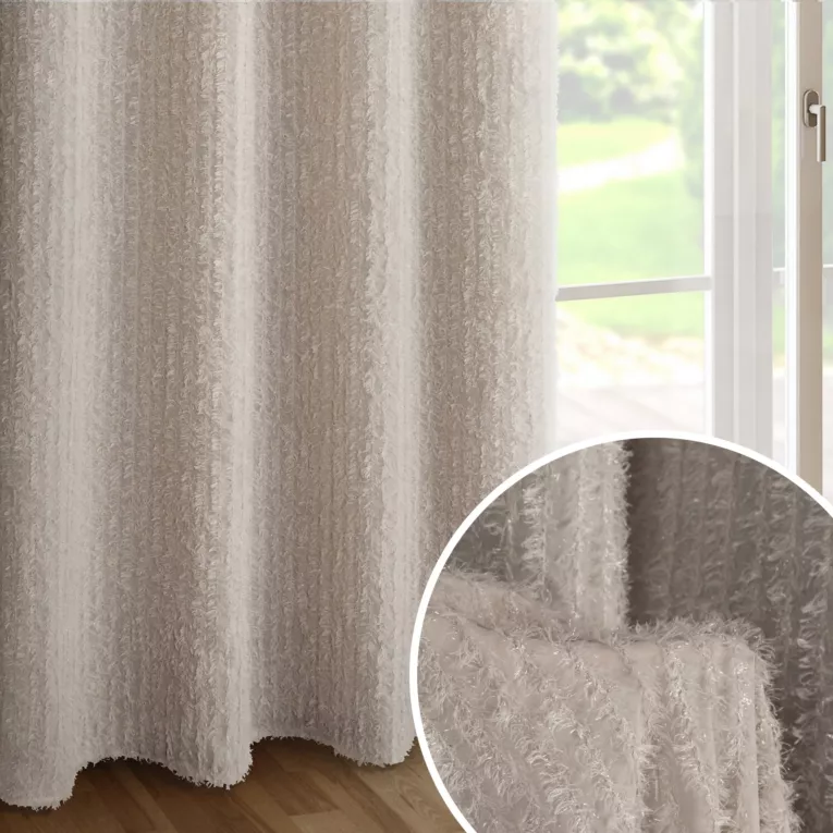 Zasłona beżowa zdobiona moherową nicią z tkaniny szyfonowej 135x250 cm przelotka - SELMA - Eva Mingę