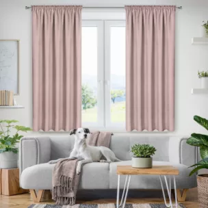 Zasłona DORA to prosta i elegancka dekoracja, która nie przytłacza wnętrza nadmiarem kolorów i wzorów, a ponadto wyróżnia się subtelną miękkością. Gładka, zamszowa tkanina wizualnie ociepla i wycisza wnętrze. Jednolity odcień elegancko otula okno, tworząc subtelne dopełnienie całej aranżacji. Zasłona po zawieszeniu ładnie się układa, tworząc miękkie i regularne fale, delikatnie spływające z karnisza. Materiał o gęstym splocie skutecznie ogranicza dopływ światła słonecznego, a  także chroni Twoją prywatność przed spojrzeniami z zewnątrz. Uniwersalność tkaniny sprawia, że doskonale prezentuje się w różnych koncepcji wnętrzarskich. Do zasłony DORA bez problemu dopasujesz odpowiednie firany, gdyż większość wzorów prezentuje się w tym zestawieniu atrakcyjnie.