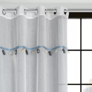 Spraw, by aranżacja pokoju dawała Twojemu dziecku radość i poczucie bezpieczeństwa. Motyw ozdobnej taśmy z wiszącymi trójwymiarowymi samochodzikami zdobi w górnej części zasłonę dziecięcą CAR z kolekcji zasłon i firan do pokoju dziecięcego. Taki dodatek z miękkimi zawieszkami znakomicie  ożywia wnętrze pokoju dziecięcego wnosząc do niego kolor i dodając niezwykłego uroku. Lekka tkanina o strukturze płótna  nie zaciemnia wnętrza, sprawiając, że do wnętrza przenika naturalne światło. Praktyczne przelotki zamocowane w górnej części, sprawiają, że zmiana dekoracji okiennej trwa tylko krótką chwilę, a po zawieszeniu tkanina układa się w miękkie i regularne fale.   Spraw dziecku miłą niespodziankę - wybierz radosną i przyjazną dekorację do pokoju dziecięcego.