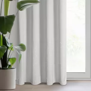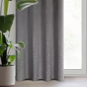 Zasłona ARIADNA z welwetu to wyjątkowo elegancki i efektowny element wystroju okna, który dodaje pomieszczeniu luksusowego charakteru. Welwet to tkanina o miękkiej, aksamitnej strukturze, która nadaje wnętrzu wyjątkowego uroku i elegancji. Kolor ciemnozielony jest głęboki i intensywny, nadając pomieszczeniu głębię i styl. Dzięki wykorzystaniu welwetu zasłona ma także subtelny połysk, który dodaje mu ekskluzywnego wyglądu. Zdobienie dolnej części tkaniny diamencikami to szczegół, który nadaje zasłonie wyjątkowego charakteru i blasku.  Taka zasłona doskonale komponuje się z eleganckimi, klasycznymi wnętrzami, dodając im luksusowego wyglądu. Może być świetnym elementem dekoracyjnym w salonie, sypialni czy jadalni, nadając pomieszczeniu wyjątkowego charakteru i stylu. Ponadto welwet jest tkaniną trwałą i łatwą w utrzymaniu czystości, co sprawia, że zasłona będzie zachowywać swoją elegancję przez długi czas. Jest to również tkanina o dobrej izolacji termicznej, co sprawia, że może pomóc w regulacji temperatury w pomieszczeniu. Zastosowanie  praktycznych przelotek podkreśla nowoczesny charakter dekoracji, ponadto zasłona bardzo ładnie się układa, tworząc po zawieszeniu regularne fale.