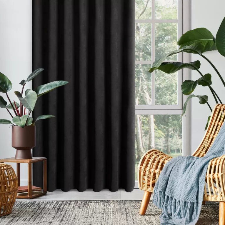 Zasłona czarna z tkaniny welurowej 560x220 cm taśma - Dora