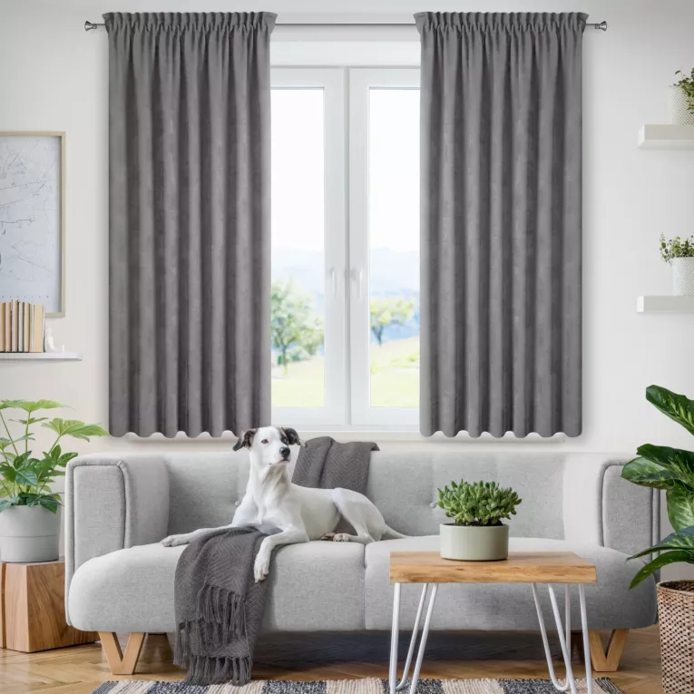 Zasłona grafitowa z tkaniny welurowej 120x180 cm taśma - Dora