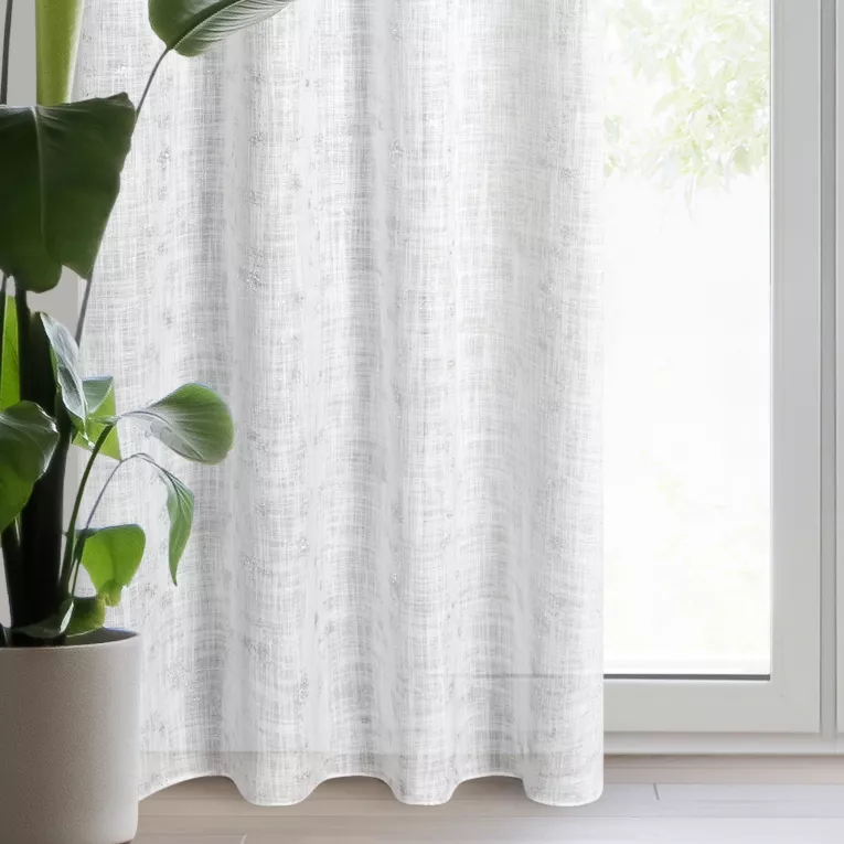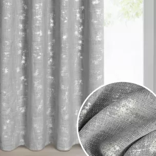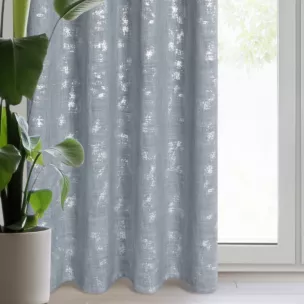 Delikatny nakrapiany półbłyszczący nadruk nadaje zasłonie eleganckiego wykończenia, subtelnie odbijając światło i dodając wnętrzu lekkości. Dzięki przelotkom zasłona jest niezwykle wygodna w użytkowaniu – łatwo ją zawiesić i przesuwać na karniszu.