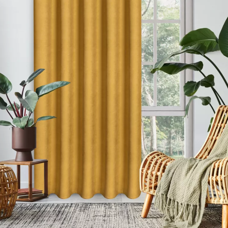 Zasłona musztardowa z tkaniny welurowej 420x280 cm tunel Dora