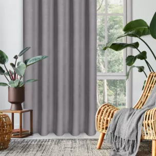 Zasłona DORA to prosta i elegancka dekoracja, która nie przytłacza wnętrza nadmiarem kolorów i wzorów, a ponadto wyróżnia się subtelną miękkością. Gładka, zamszowa tkanina wizualnie ociepla i wycisza wnętrze. Jednolity odcień elegancko otula okno, tworząc subtelne dopełnienie całej aranżacji. Zasłona po zawieszeniu ładnie się układa, tworząc miękkie i regularne fale, delikatnie spływające z karnisza. Materiał o gęstym splocie skutecznie ogranicza dopływ światła słonecznego, a  także chroni Twoją prywatność przed spojrzeniami z zewnątrz. Uniwersalność tkaniny sprawia, że doskonale prezentuje się w różnych koncepcji wnętrzarskich. Do zasłony DORA bez problemu dopasujesz odpowiednie firany, gdyż większość wzorów prezentuje się w tym zestawieniu atrakcyjnie.