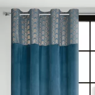 Zasłona niebieska ze złotym wzorem z błyszczącego welwetu 140x250 cm przelotka - ELEN