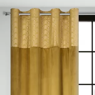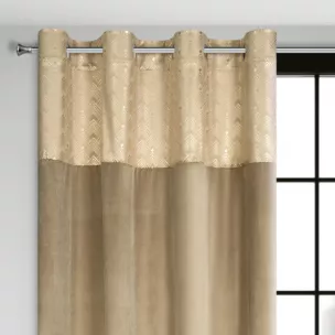 Szukasz dodatków, które dodadzą wnętrzu szyku i elegancji? Zasłona  ELEN z miękkiego welwetu z ozdobnym pasem z nadrukiem geometrycznym w górnej części to dodatek, który przyciąga wzrok i pięknie zaprezentuje się w nowoczesnym wnętrzu. Puszysta, dobrze kryjąca aksamitna tkanina o gęstym splocie dodaje wnętrzu niezwykłego szyku. Zastosowane w zasłonie praktyczne przelotki sprawiają, że po zawieszeniu tkanina pięknie się układa i doskonale prezentuje. Ponadto praktyczne przelotki sprawiają, że zmiana dekoracji okiennej trwa tylko chwilę. Nie czekaj - już dziś odmień wygląd swojego wnętrza.