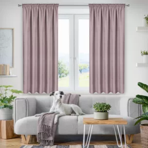 Zasłona DORA to prosta i elegancka dekoracja, która nie przytłacza wnętrza nadmiarem kolorów i wzorów, a ponadto wyróżnia się subtelną miękkością. Gładka, zamszowa tkanina wizualnie ociepla i wycisza wnętrze. Jednolity odcień elegancko otula okno, tworząc subtelne dopełnienie całej aranżacji. Zasłona po zawieszeniu ładnie się układa, tworząc miękkie i regularne fale, delikatnie spływające z karnisza. Materiał o gęstym splocie skutecznie ogranicza dopływ światła słonecznego, a  także chroni Twoją prywatność przed spojrzeniami z zewnątrz. Uniwersalność tkaniny sprawia, że doskonale prezentuje się w różnych koncepcji wnętrzarskich. Do zasłony DORA bez problemu dopasujesz odpowiednie firany, gdyż większość wzorów prezentuje się w tym zestawieniu atrakcyjnie.