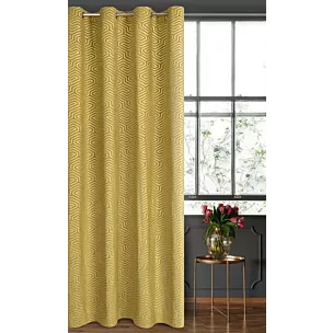 Zasłona welwetowa złota we wzór geometryczny 140x250 przelotka - INGA - Pierre Cardin