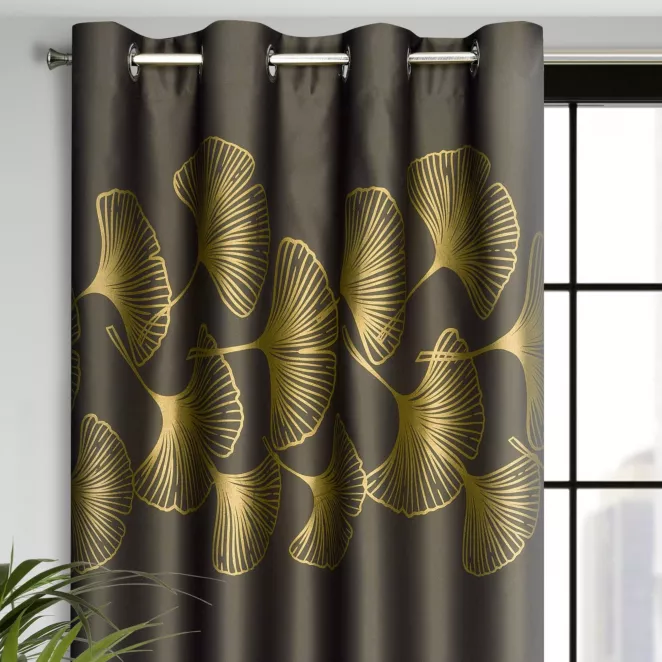 3. Zasłona czarno, srebrzysta zdobiona błyszczącym wzorem z tkaniny zaciemniającej 140x250 cm przelotka - ELISE