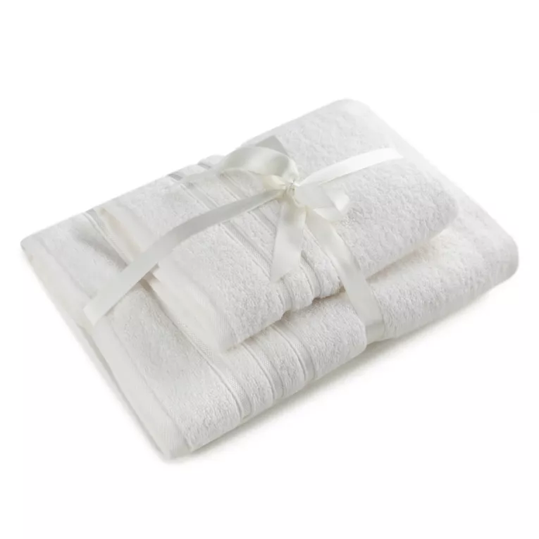 Zestaw ręczników bawełnianych na prezent 2 szt kolor biały z bordiurą z tkanymi paskami 480 g/m2 LOCA