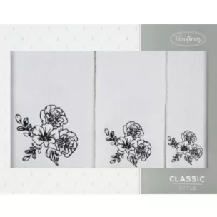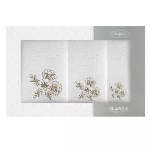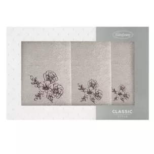 Zestaw ręczników bawełnianych na prezent 3 szt kolor beżowy, brązowy z haftem kwiatów 400 g/m2 MELANI