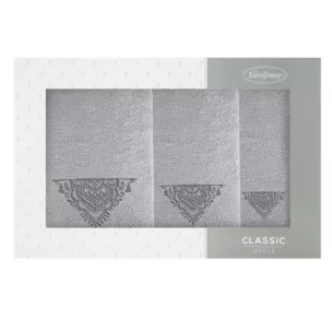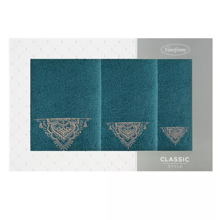 Zestaw ręczników bawełnianych na prezent 3 szt kolor ciemno turkusowy, srebrny z haftem 400 g/m2 LAURA