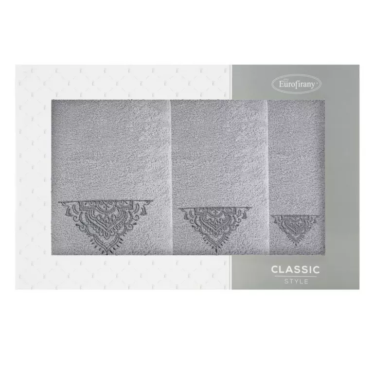 Zestaw ręczników bawełnianych na prezent 3 szt kolor srebrny, stalowy z haftem 400 g/m2 LAURA